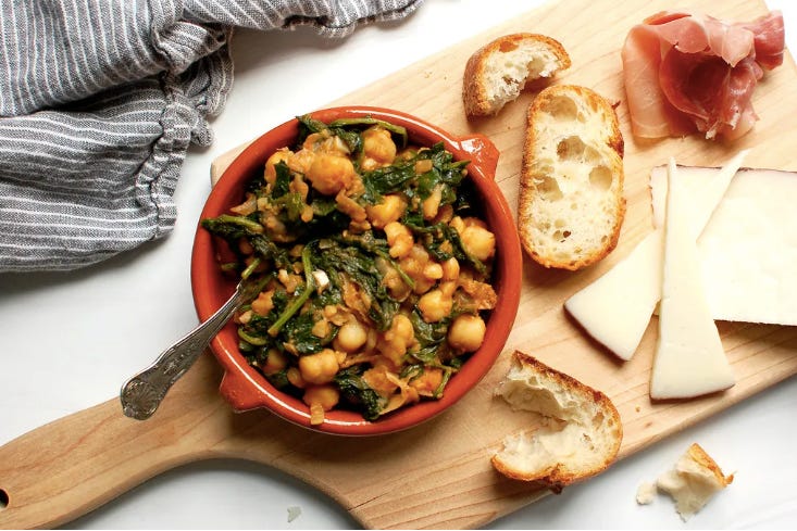 This is a classic, simple Spanish tapa that makes a great stewy bowl on its own, or a topping for crusty bread. I love this for lunch or an afternoon snack.